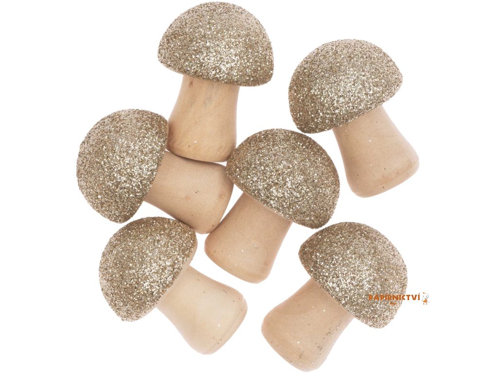 3D dřevěný HŘÍBEČEK, 6ks v balení