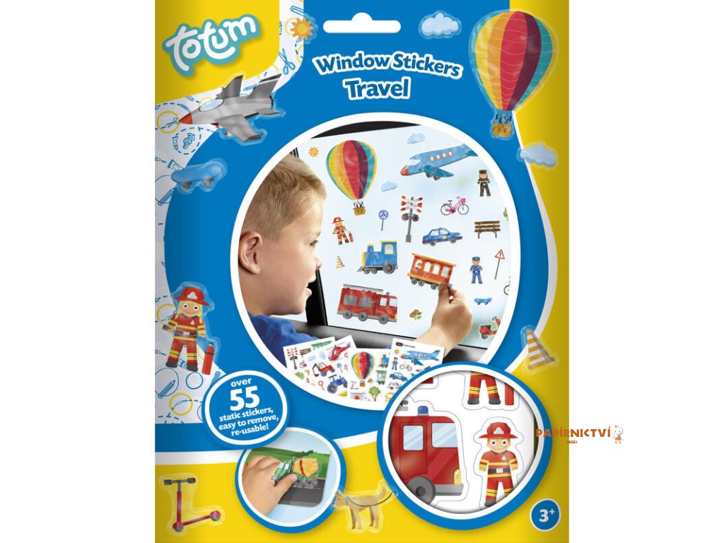 DOPRAVNÍ PROSTŘEDKY - Více než 55 samolepek k opakovanému použití. Drží na okně, na skle nebo na zrcadle, jakékoliv hladké ploše.