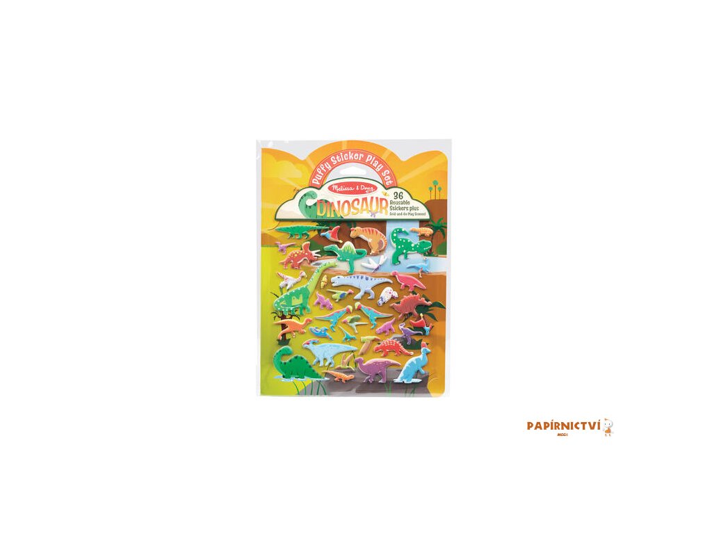 Dinosauří dobrodružství s pravěkou tématikou vytvoř si pozadí se scénou. Puffy samolepky je možné lepit znovu a znovu a třeba i přes sebe.