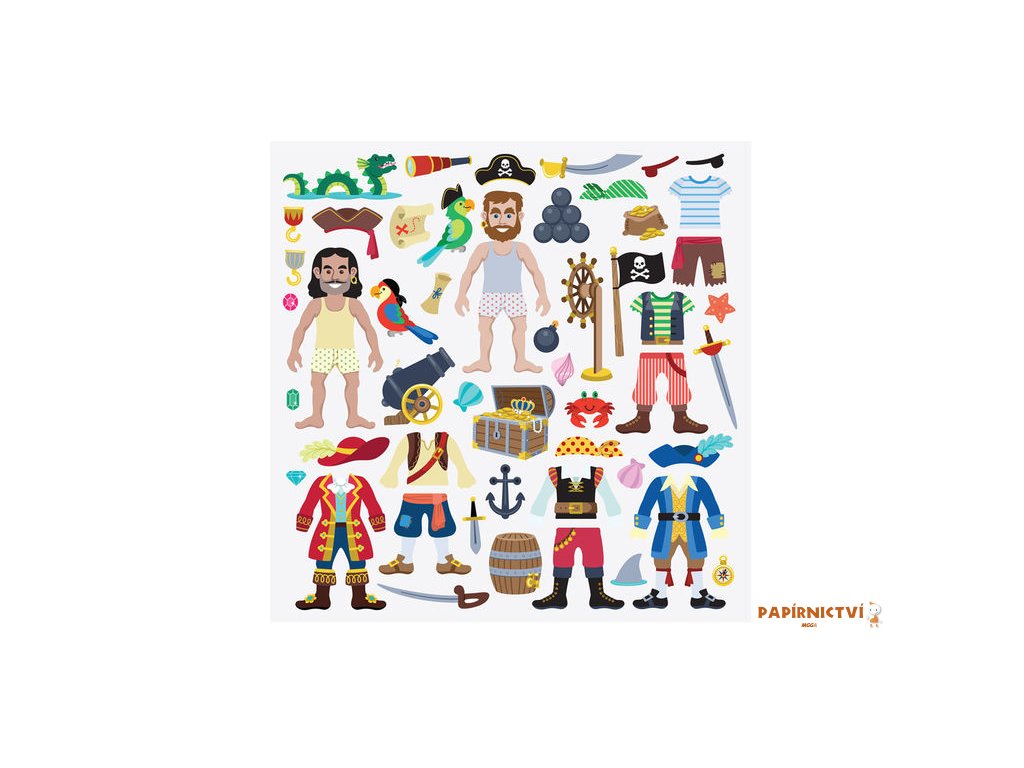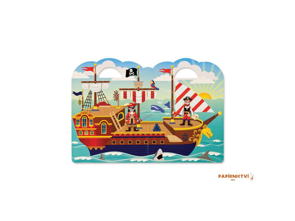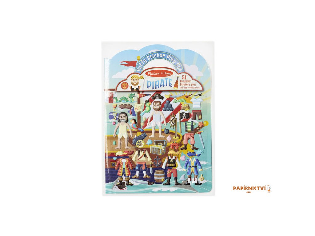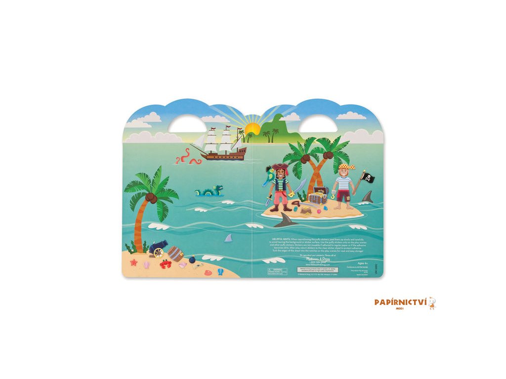 Dotvořte pirátskou loď nebo pustý ostrov pomocí lepení samolepek na pozadí se scénou. Puffy samolepky je možné lepit znovu a znovu a třeba i přes sebe.