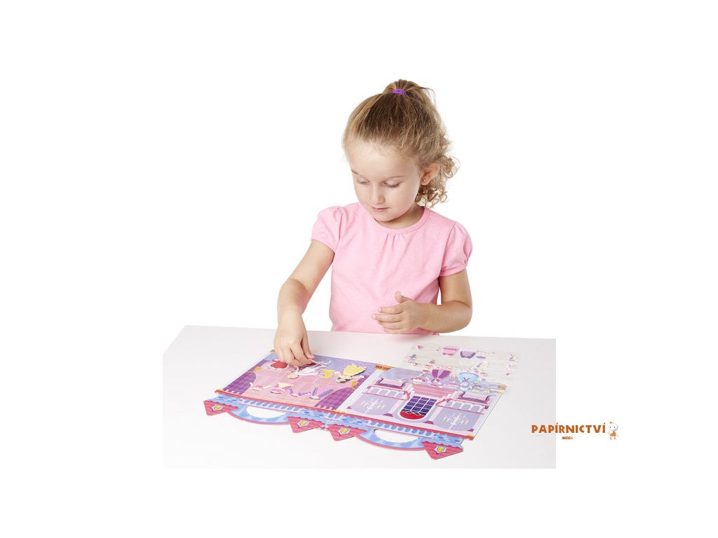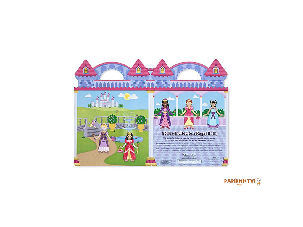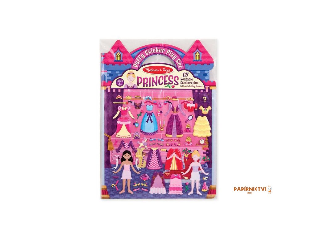 Oblékněte princezny pokaždé nějak jinak na pozadí se scénou. Puffy samolepky je možné lepit znovu a znovu a třeba i přes sebe.