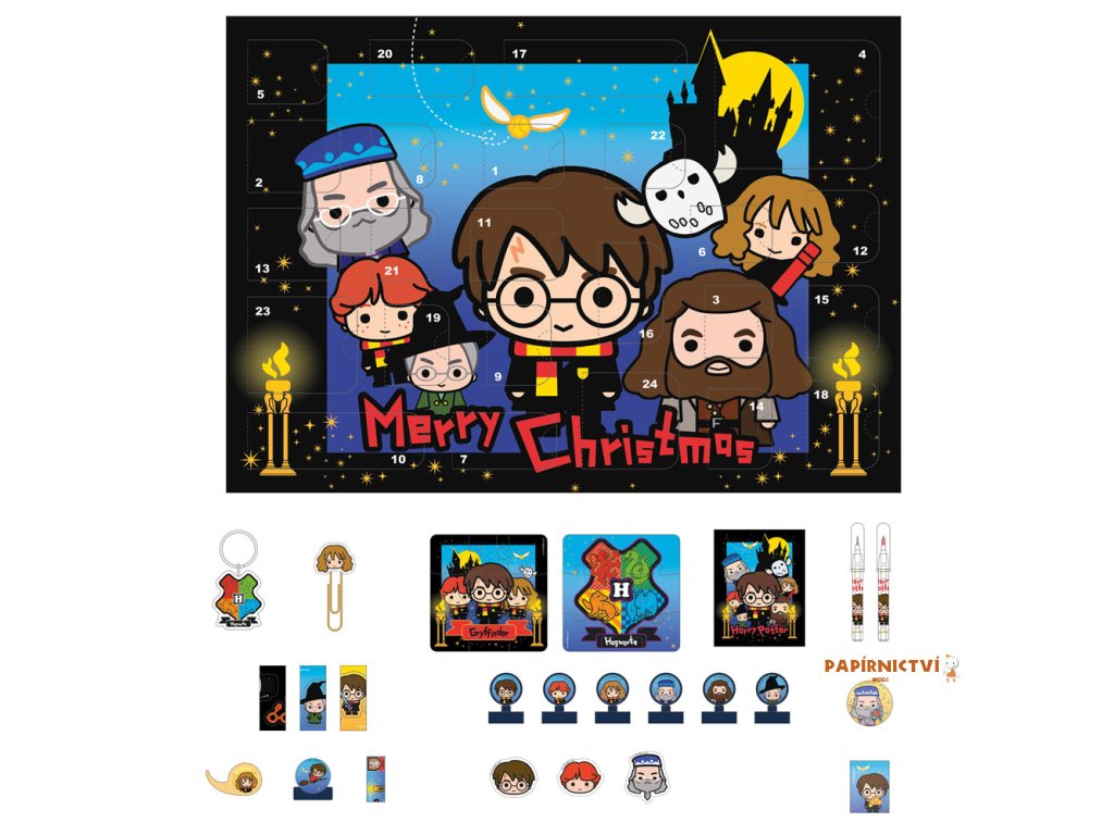 Adventní kalendář inspirovaný dětským idolem, Harry Potterem. Je to ideální dárek pro Vaše ratolesti. Tento kalendář se od ostatních, běžných, adventních kalendářů liší tím, že není naplněn čokoládou, ale různými papírenskými produkty.