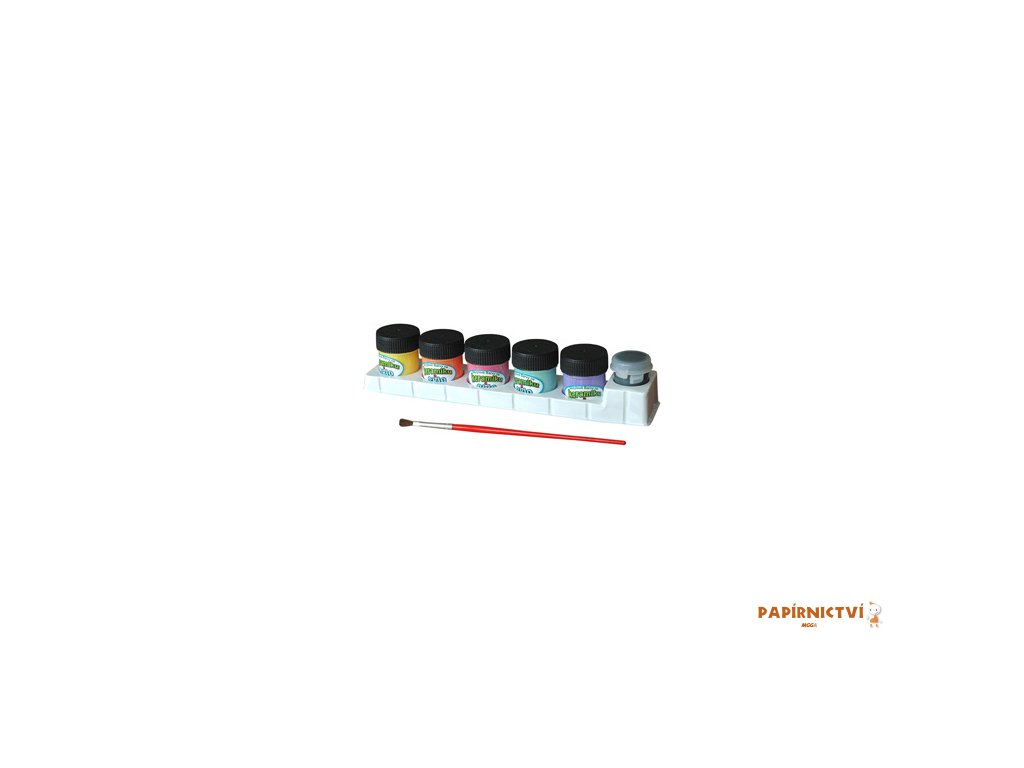 Obsahuje 5 barev á 12ml v kalíškách a černou konturu 5ml, štětec. Bezpečné pro děti. Jednoduché malování. Vodou ředitelné a možnost vzájemně barvy míchat k docílení širší barevné palety.