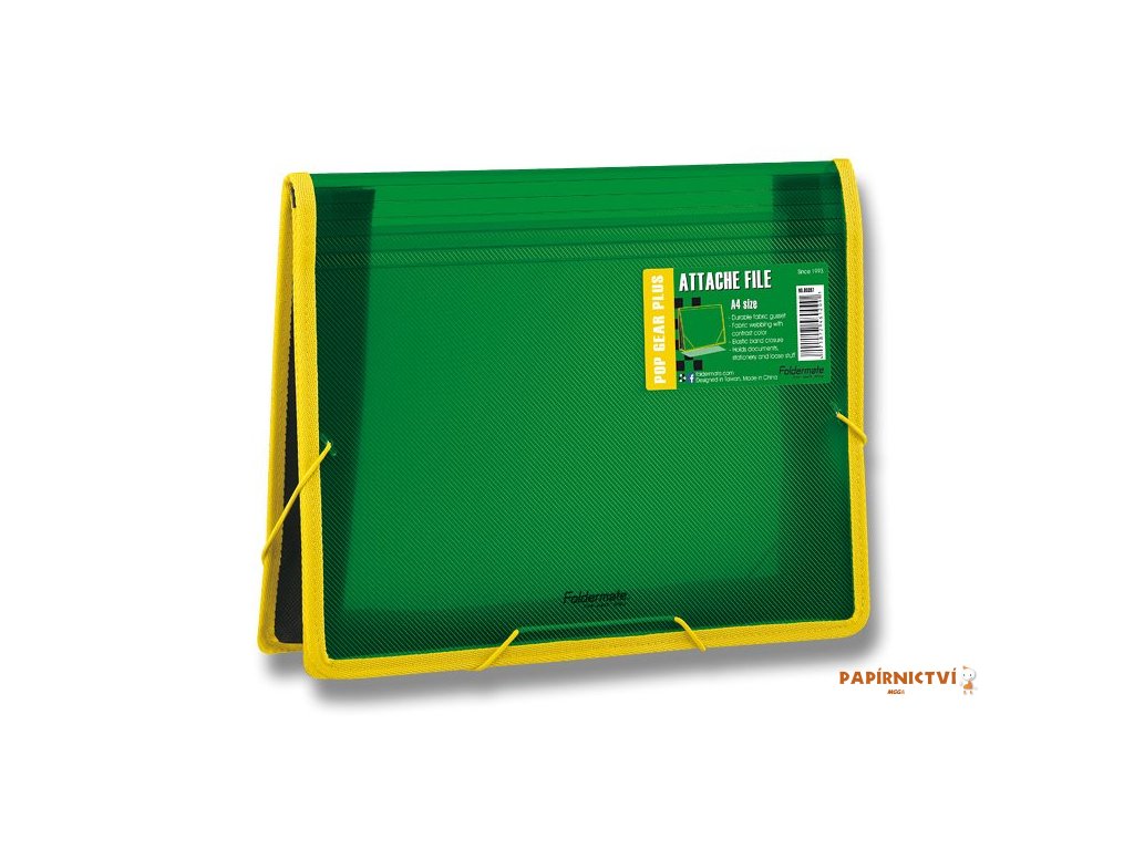 Desky na dokumenty pro pohodlný přenos a organizaci dokumentů velikosti A4 je vyyrobená z pevného a transparentního polypropylenu v příjemném dvoubarevném provedení. Tloušťka polypropylenu je 700 mikronů. Aktovka má jeden oddíl s rozšiřitelným textilním dnem z odolného materiálu. Praktické uzavírání na gumičku pro bezpečný přenos.