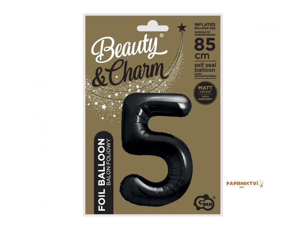 FÓLIOVÝ BALÓN ČÍSLO 5, MATNĚ ČERNÝ