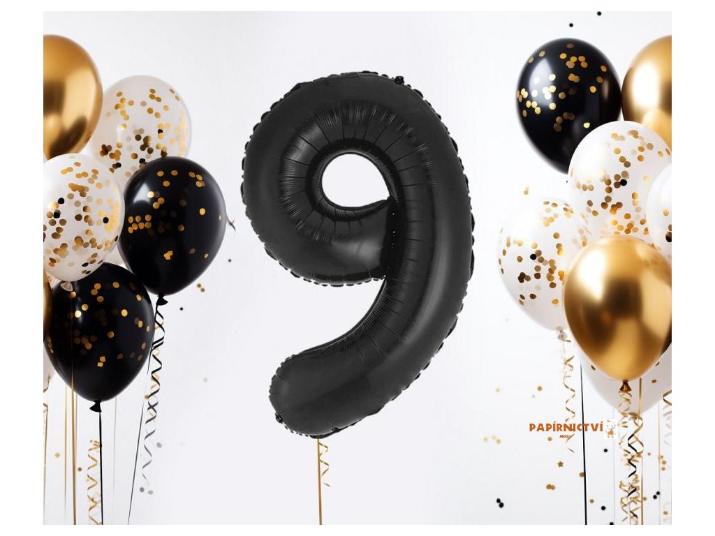 FÓLIOVÝ BALÓN ČÍSLO 9, MATNĚ ČERNÝ