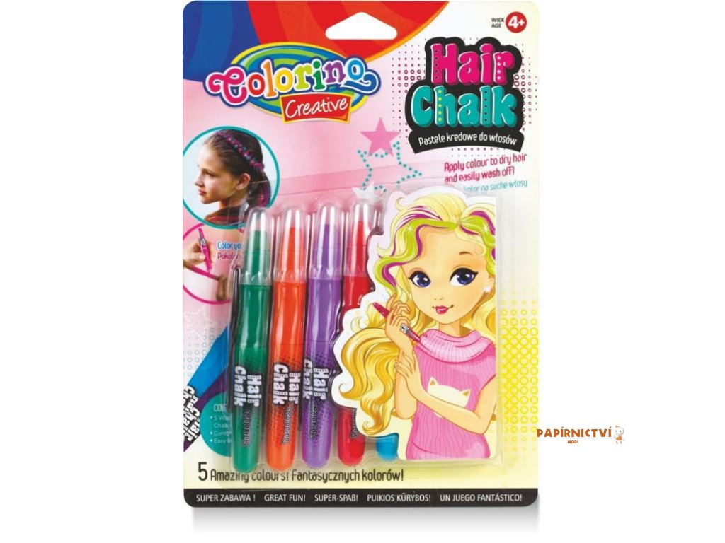 Barevné pero snadno změní barvu vlasů. Na vybraný pramen suchých vlasů naneste barvu a pomocí malého hřebínku rozčešte. Barvu pak snadno smyjete pomocí vlasového šamponu. Balení obsahuje 5 barev (5x 6 g) a minihřebínek.
