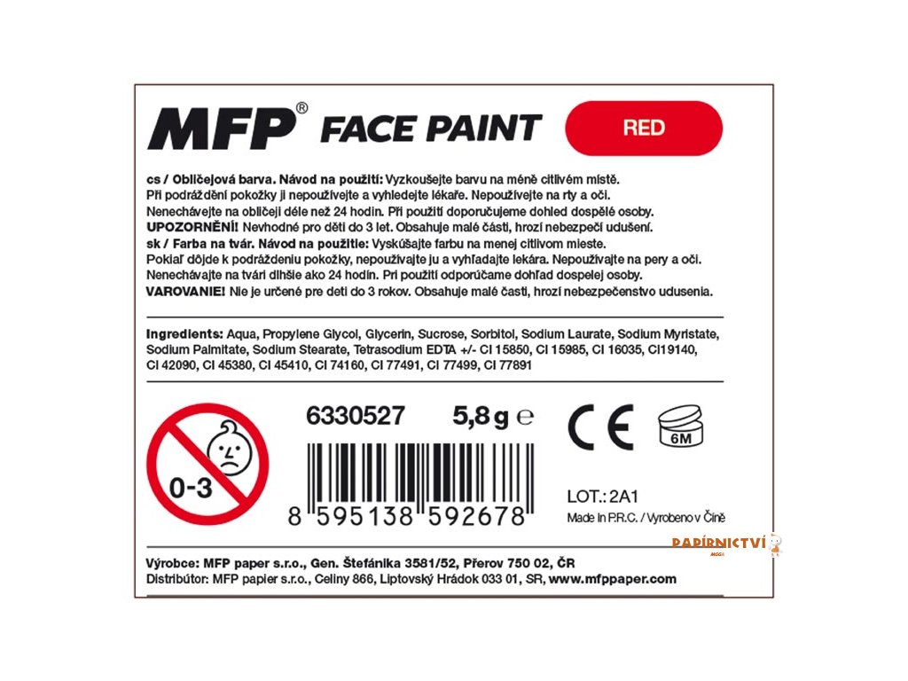 Barva na obličej červená, na principu rtěnky (6 g). Díky těmto pestrým barvám vykouzlíte na tváři dítěte krásnou masku na karneval, párty nebo jinou oslavu. Dermatologicky testováno.
