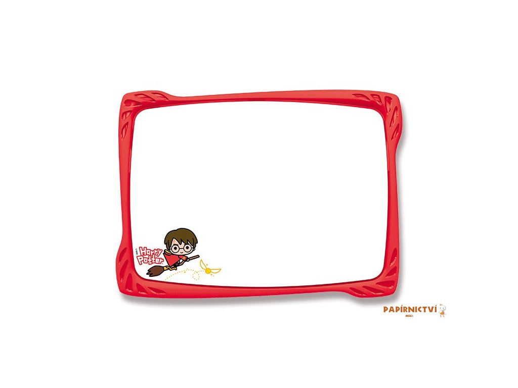 Bílá popisovatelná tabule s příslušenstvím s atraktivním motivem Harryho Poterra. Balení obsahuje tabulku, držák tabule, stěrku a popisovač.