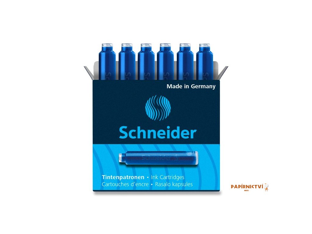 Standardní inkoustové bombičky do plnících per Schneider. Krabička obsahuje 6 ks bombiček, cena za krabičku.