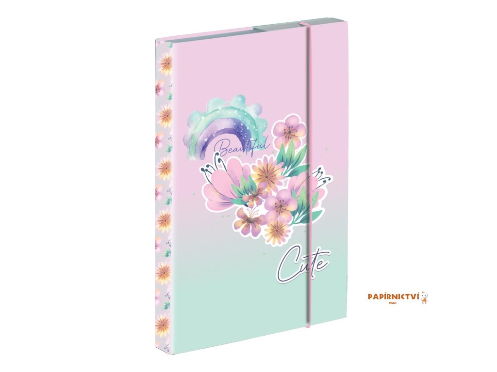 Oblíbený box na sešity ve formátu A4. Nezbytná součást vybavení každého školáka na uložení sešitů, papírů a dalších školních pomůcek. Odolný materiál - lamino, chrání proti poškození. Zavírání na gumičku. Šířka hřbetu 3,5 cm.