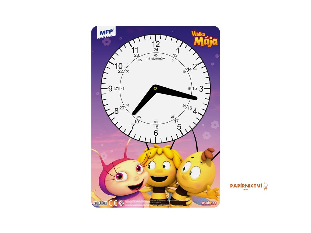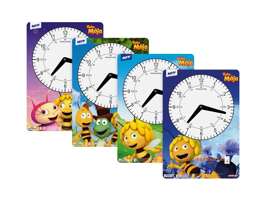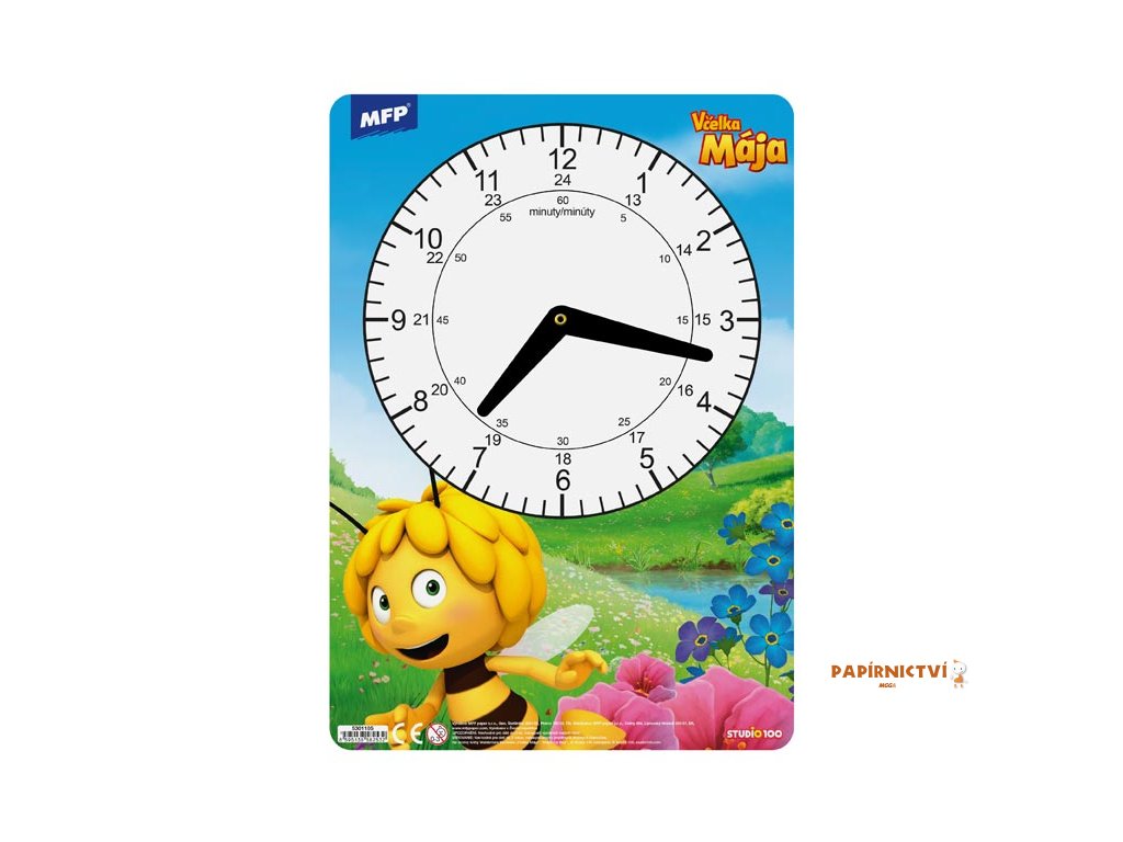 Dětské papírové hodiny se včelkou Májou. Didaktická pomůcka, dobře využitelná k výuce času u dětí předškolního věku nebo u prvňáčků. Tyto cvičné hodiny nesmí chybět Vašemu dítěti při nástupu do první třídy základní školy.