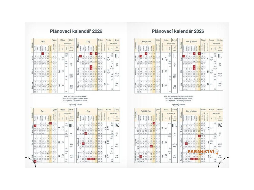 - čtvrtletní plánovací kalendář