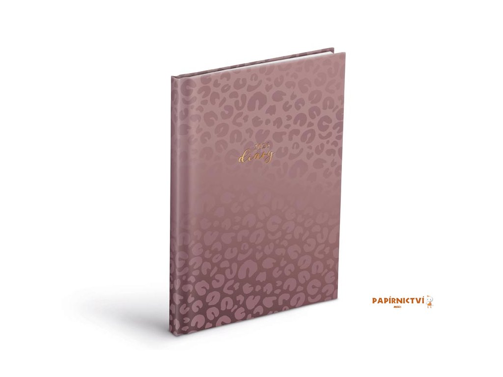 Týdenní diář na rok 2026 ve formátu A5 je navržen tak, aby vám pomohl mít přehled. Obálka v tmavě bordó odstínu s jemným leopardím motivem působí originálně, ale nevtíravě. Matné lamino s parciálním lakem vytváří působivý kontrast matného základu s lesklými detaily a zároveň chrání povrch před každodenním opotřebením. Zlatý nápis na obálce dodává decentní lesk, který zaujme na první pohled.