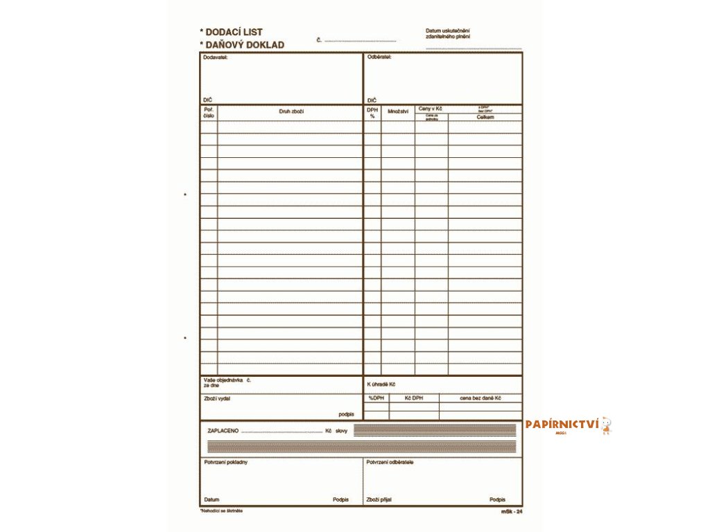 Dodací list - daňový doklad A4