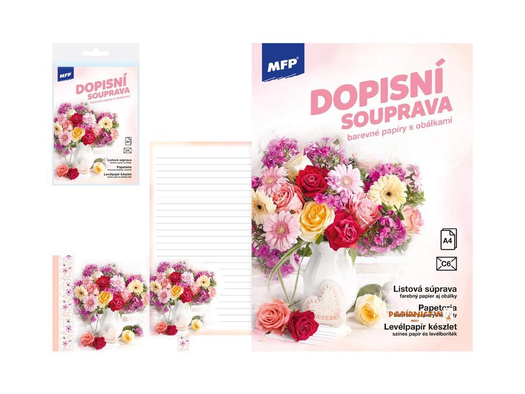Dopisní souprava s obrázkem kytice květin. Píšete rádi dopisy svým známým? Pořiďte si u nás krásné dopisní papíry s různými motivy a nezapomeňte ani na psací potřeby.
