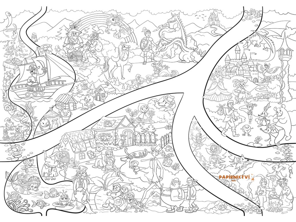 Omalovánka má rozměr 64 x 90 cm, a proto ji může vybarvovat každý sám nebo ve skupině! Papír má vysokou gramáž 200 g, proto můžete zvolit na omalování pastelky, voskovky nebo i vodové barvy!