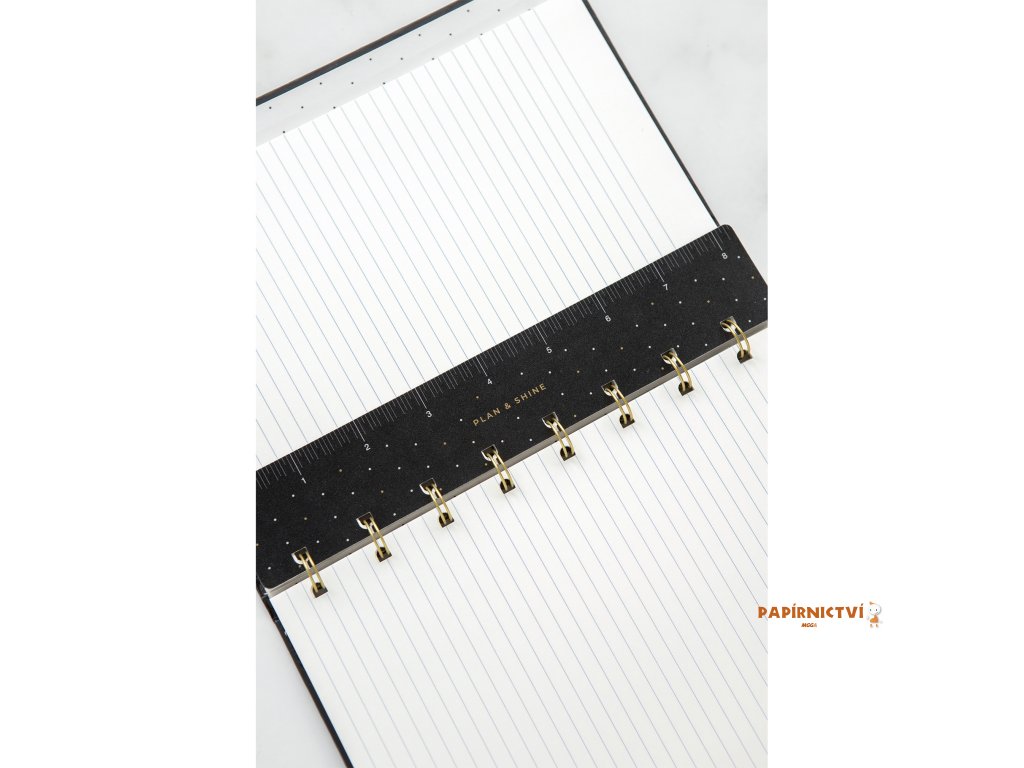 Potřebujete si založit aktuální poznámky nebo nakreslit rovnou čáru? S tímto nádherným pravítkem z kolekce Moonlight, kompatibilním s našimi zápisníky Filofax Notebook velikosti A5 to máte vyřešené. Pravítko/záložku můžete libovolně přesouvat a bude vám ladit s deskami vašeho zápisníku. Obsahuje označení centimetrů a palců.