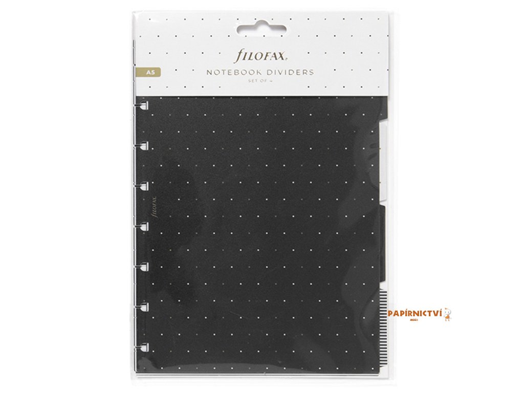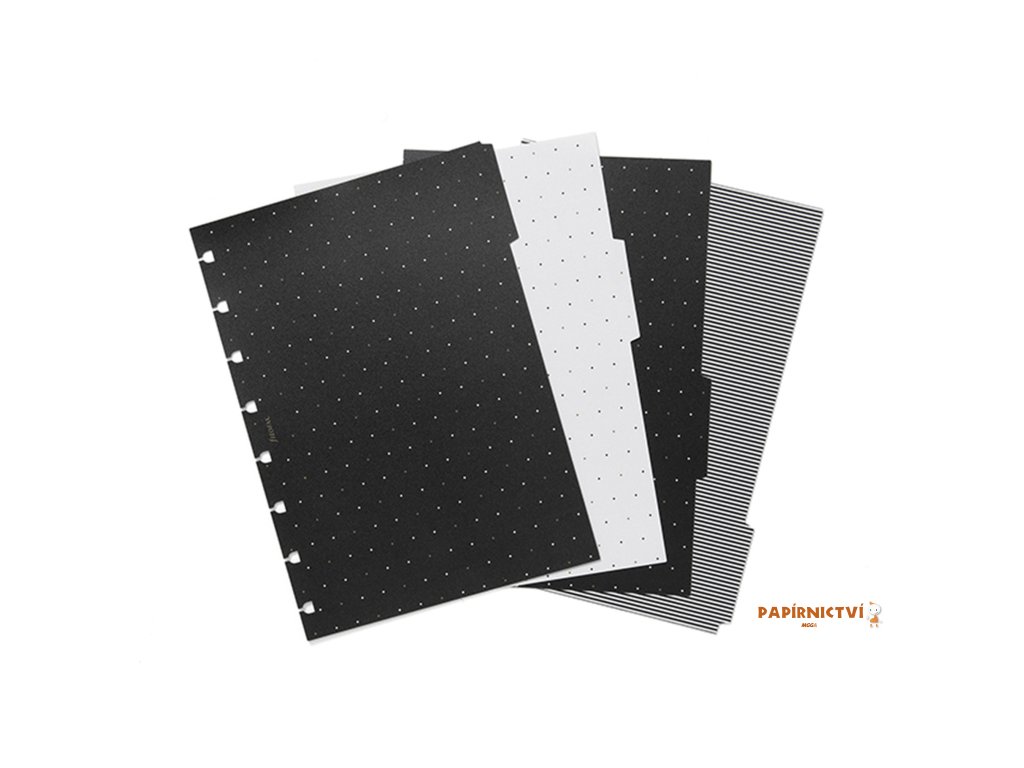 Dodejte vašem zápisníku Filofax Notebook A5 nadčasový styl díky této sadě čtyř extra odolných rozřazovačů z kolekce Moonlight. Rozřazovače mají bílou a černou barvu s různými vzory a zlatými detaily a to vždy z obou stran.