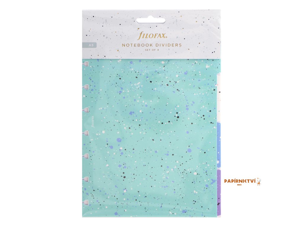 Plánujte a tvořte! Dodejte Vašemu Filofax Notebook více pestrosti s touto barevnou sadou čtyř odolných plastových rozřazovačů z naší kolekce Expressions, které jsou speciálně navržené aby ladily s Vašim plnitelným zápisníkem Filofax Notebook A5. Tato sada obsahuje oboustranně potištěné rozřazovače v barvách Mint, světle modrá, bílá a fialová.