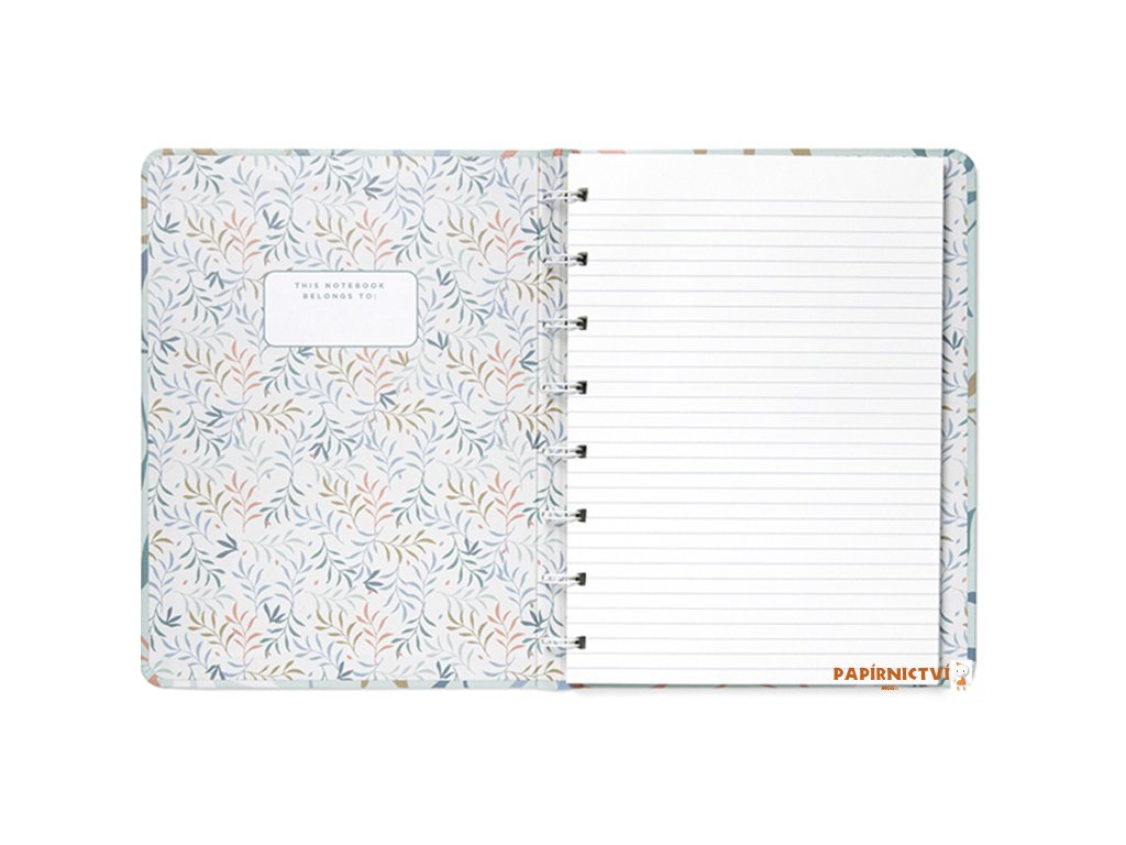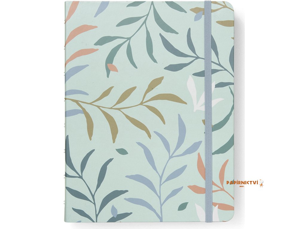Uchovávejte vaše myšlenky a poznámky v tomto znovu plnitelném zápisníku Filofax Notebook A5 v mintové barvě z kolekce Botanical inspirovaného přírodou. Pevné kartonové laminované desky zdobí přírodní vzory nejenom z vnější strany, ale také té vnitřní. Zápisník obsahuje linkovaný papír s gramáží 100 g/m2, které je vhodné i pro plnicí pero. LIsty můžete přemisťovat nebo doplňovat, což vám umožní sestavit si zápisník, který skutečně vyhovuje vašim potřebám. Jeho bílá dvoudrátová vazba mu umožňuje ležet naplocho a barevně sladěná gumička vám pomůže udržet vše na svém místě.