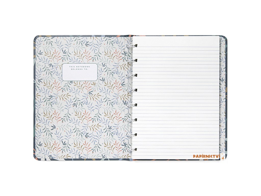 Uchovávejte vaše myšlenky a poznámky v tomto znovu plnitelném zápisníku Filofax Notebook A5 v modré barvě z kolekce Botanical inspirovaného přírodou. Pevné kartonové laminované desky zdobí přírodní vzory nejenom z vnější strany, ale také té vnitřní.