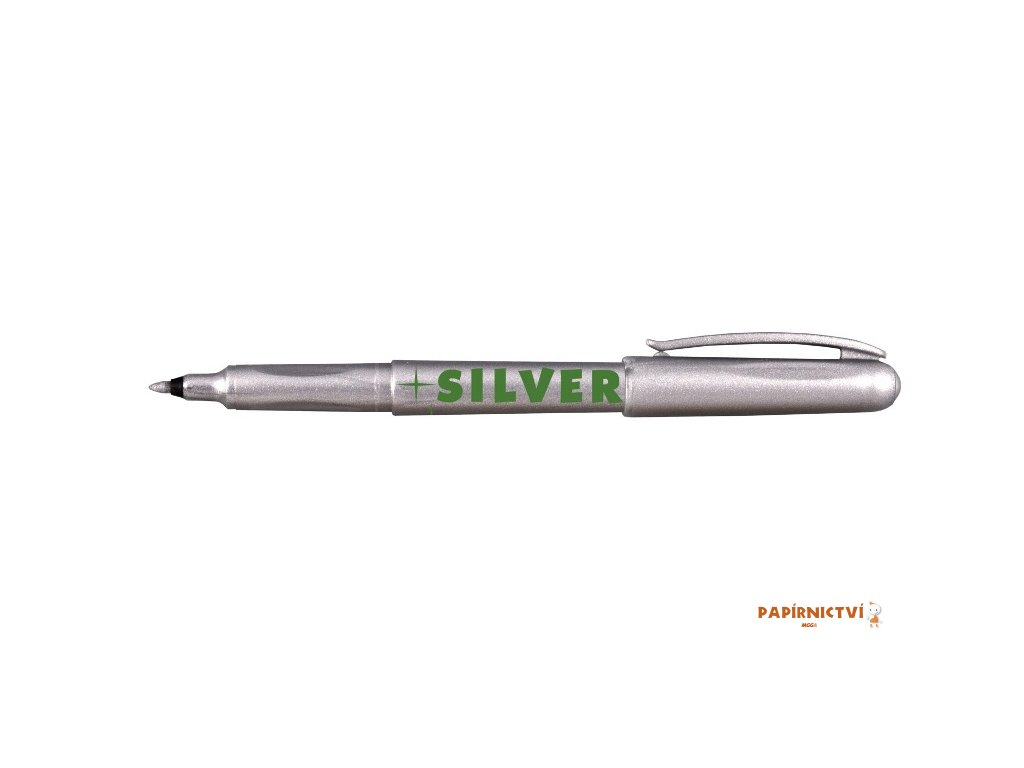 Značkovač se stříbrnou stopou písma, ergonomický úchop, inkoust je permanentní na papíře a porézních materiálech a částečně na skle, kovech a plastech, stopy 1 mm.