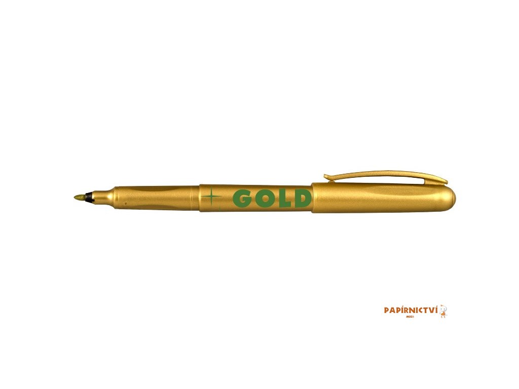 Značkovač se zlatou stopou písma, ergonomický úchop, inkoust je permanentní na papíře a porézních materiálech a částečně na skle, kovech a plastech, šířka stopy 1 mm.