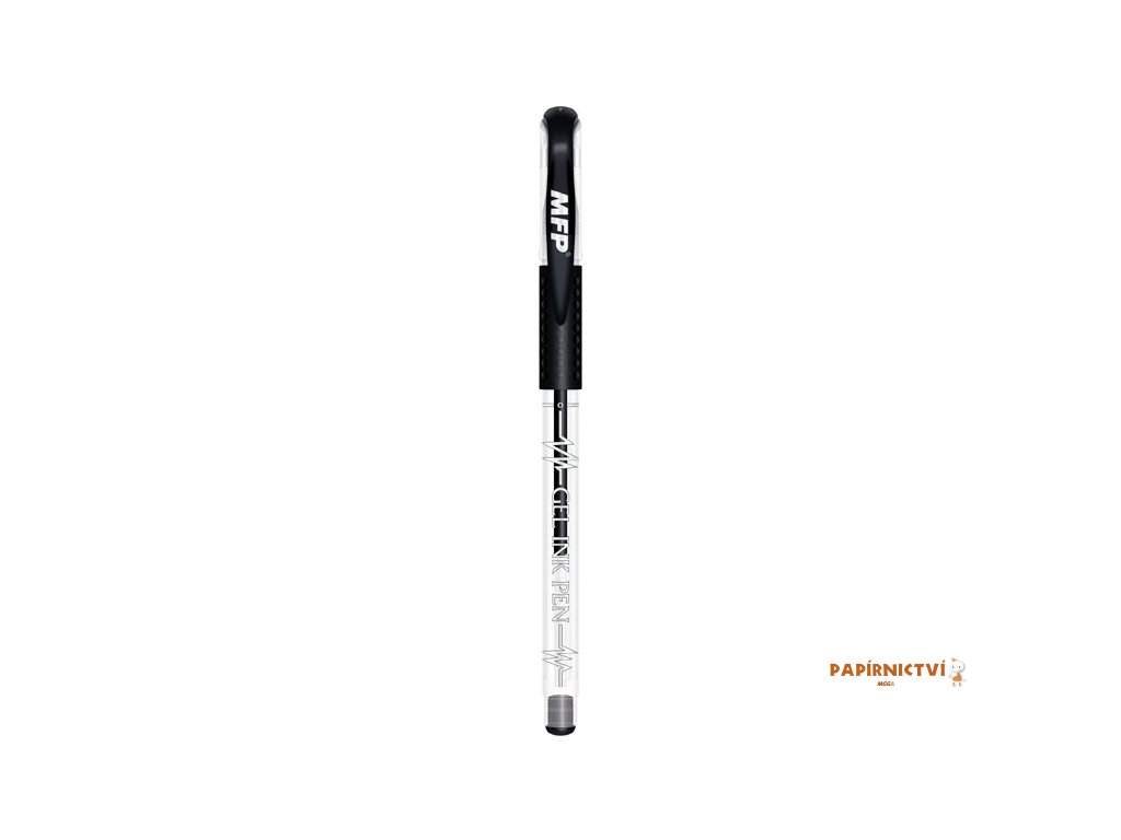 Gelové pero má pogumovaný úchop, a tak zabraňuje klouzání v ruce.