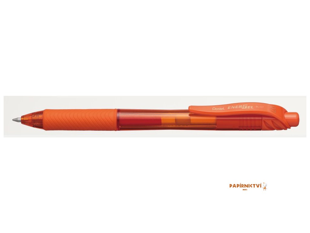 • gelové pero v oranžovém provedení • vyměnitelná náplň • rychleschnoucí inkoust EnerGel X • mačkací mechanismus • vroubkovaný pogumovaný úchop • kónický hrot • průhledné plastové tělo • široký výběr barev • průměr kuličky hrotu 0,7mm • stopa 0,5mm