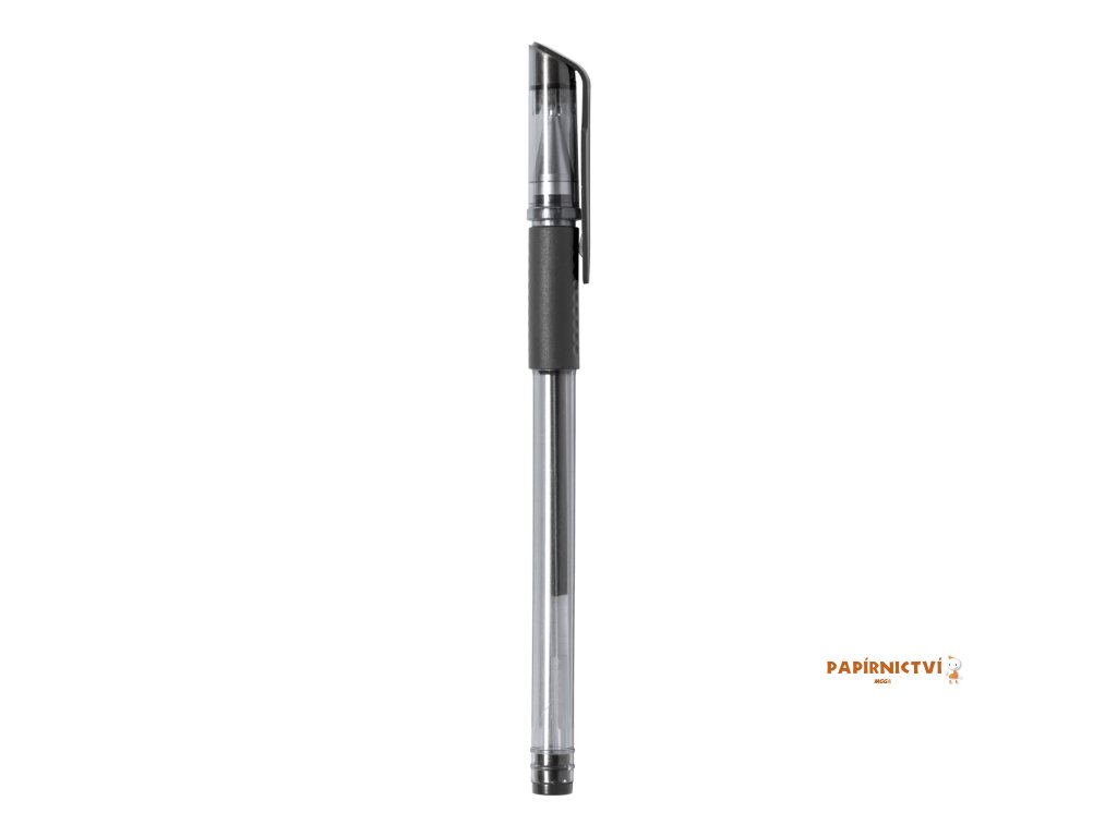 Pero s gelovým inkoustem. S průhledným tělem a odpovídající barevnou rukojetí, uzávěrem a inkoustem.