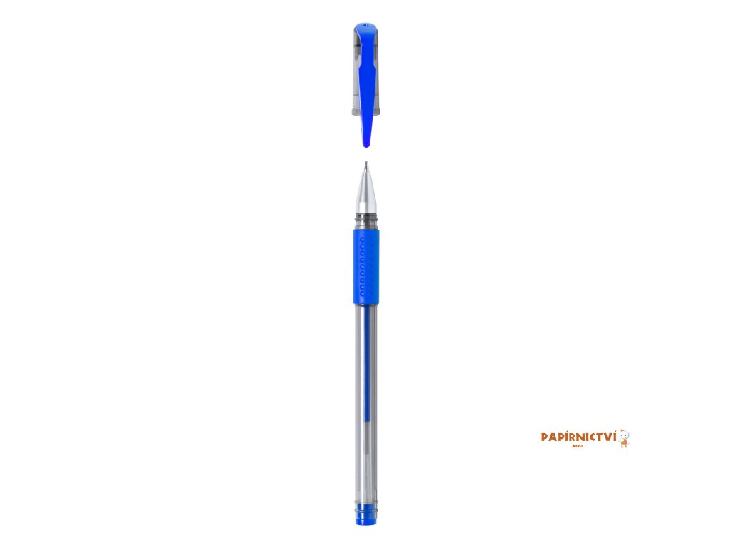 Pero s gelovým inkoustem. S průhledným tělem a odpovídající barevnou rukojetí, uzávěrem a inkoustem.