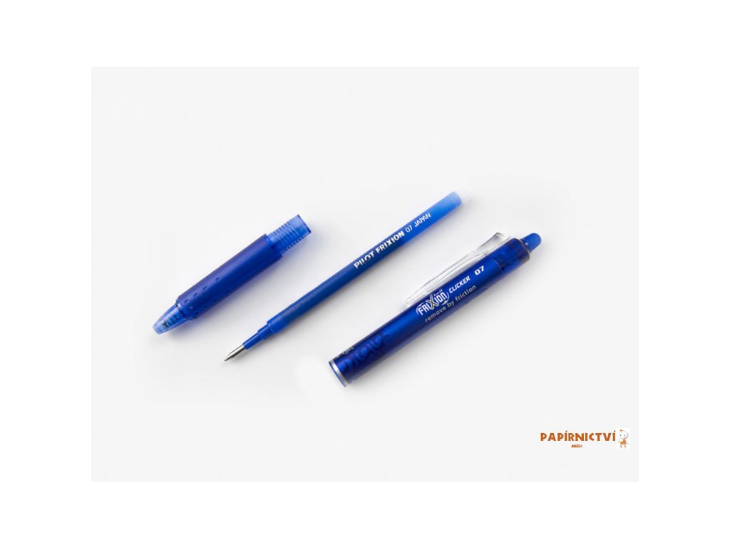 Napiš ... Vygumuj ... A přepiš s rollerem FriXion se stiskacím mechanismem! Vygumujte beze zbytků pomocí tepla, které vzniká třením gumovacího hrotu FriXion o papír, a který nezanechává žádné zbytky. Použijte stejné pero (inkoust) pro psaní a přepsání. Použijte roller FriXion Ball Clicker s patentovaným termosenzitivním inkoustem, se kterým - jako již tradičně - přináší Pilot revoluci v psaní! Ve funky stylu s designem tetování je dodáván v osmi barvách. Nepoužívejte k podepisování oficiálních dokumentů, u právních dokumentů, při zkouškách nebo při práci s jinými dokumenty, jejichž obsah musí mít trvalý charakter.