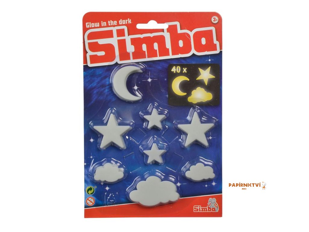 Mráčky, měsíc a hvězdy, které po nasvícení ve tmě svítí. Dekorace vhodná k nalepení na stěnu, strop či nábytek. Sada obsahuje 40 dílů.