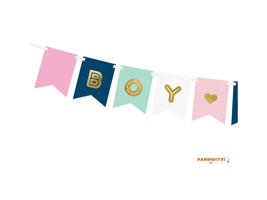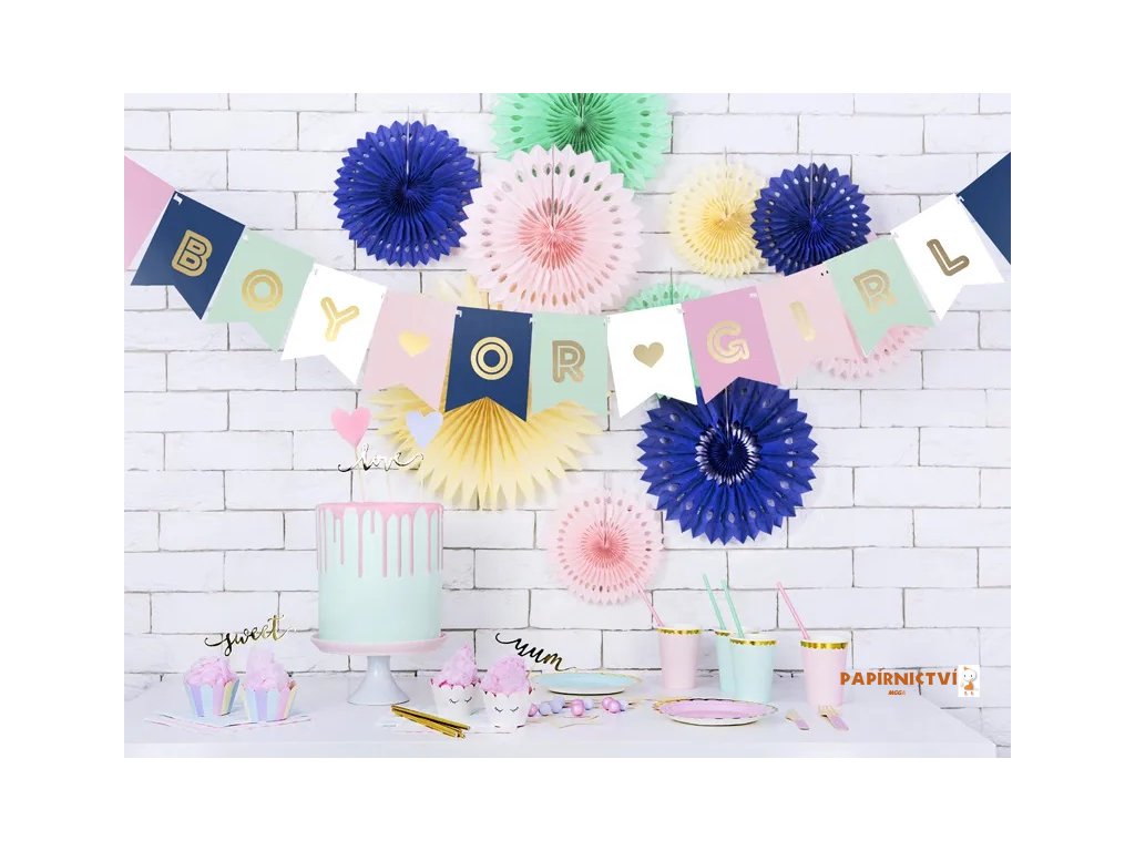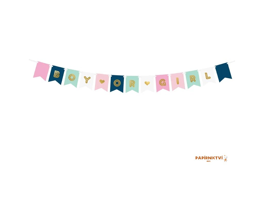 Prapor "Boy or Girl", mix barev se zlatým nápisem, pro svépomocné složení,