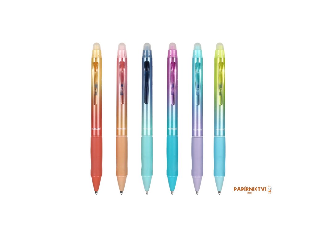 Konec chybám a škrtání v sešitech. Prostě je vymaž a přepiš. Pevná pryž na konci pera a jedinečné složení inkoustu zaručuje jednoduché a opakované gumování. Stiskací mechanika v klipu. K dispozici náhradní náplň.