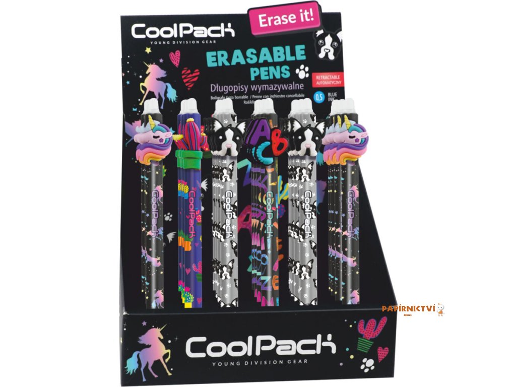 Gumovací pero s dívčím motivem.