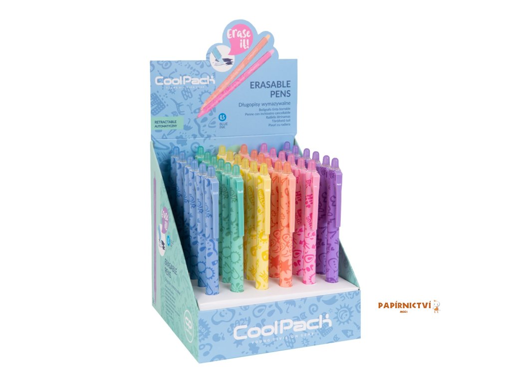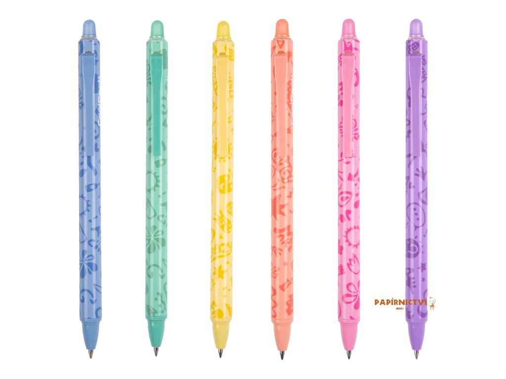 Konec chybám a škrtání v sešitech. Prostě je vymaž a přepiš. Pevná pryž na konci pera a jedinečné složení inkoustu zaručuje jednoduché a opakované gumování. Stiskací mechanika v klipu. K dispozici náhradní náplň.