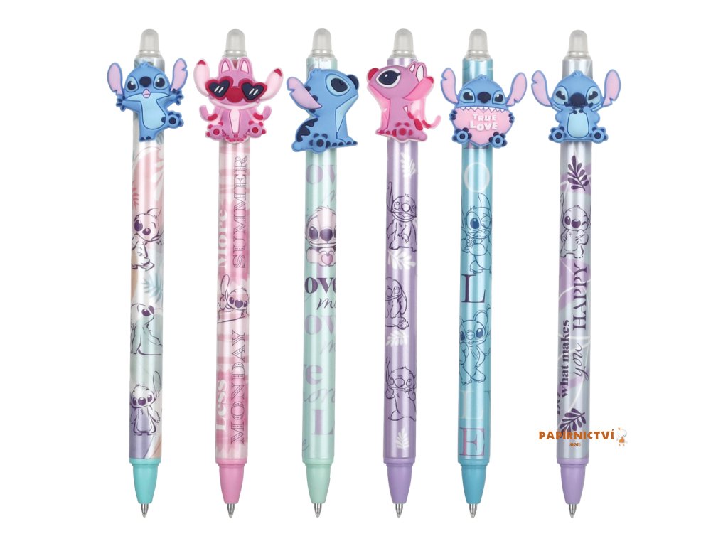 Praktická gumovatelná pera v pastelových barvách s veselými motivy mimozemského Stitche. Kvalitní inkoust lze v případě potřeby jednoduše vygumovat a přepsat.