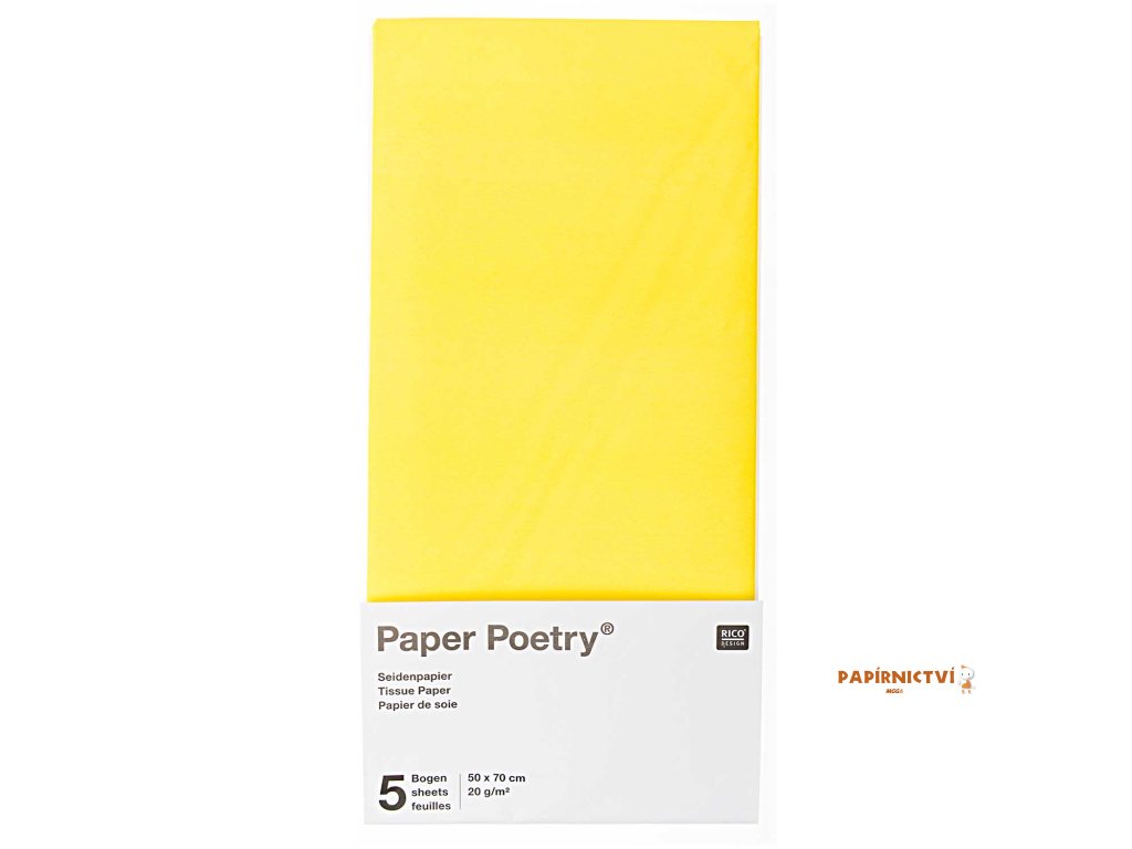 Hedvábný papír 50x70cm, 5ks, žlutý