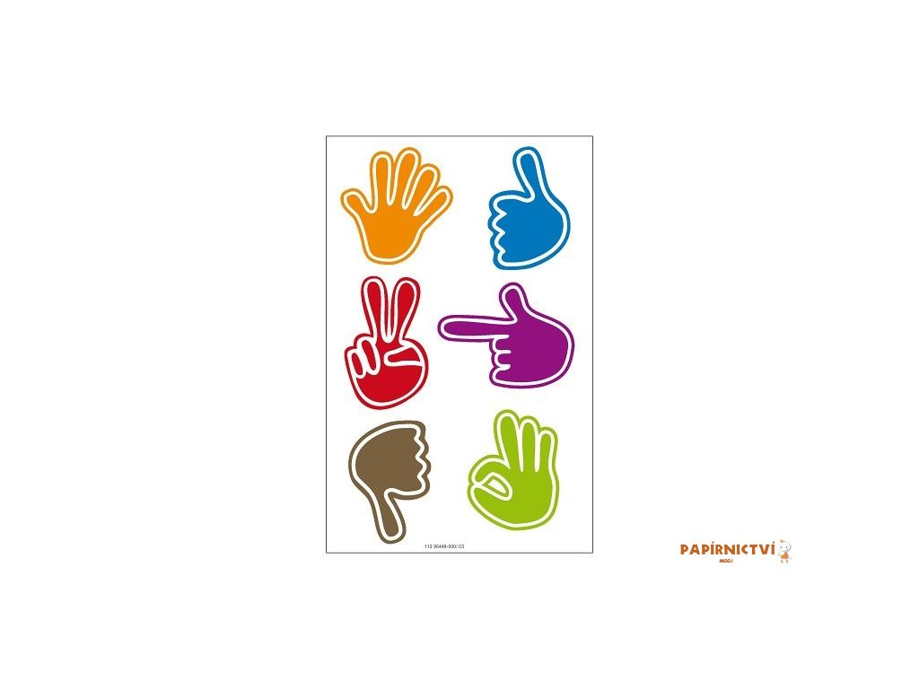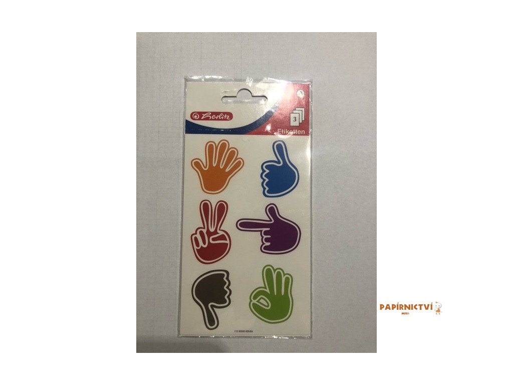 Etikety Ruce barevné, 3 archy, samolepicí, rozměr blistru: 8 x 16 cm, rozměr archu: 8 x 12,5 cm