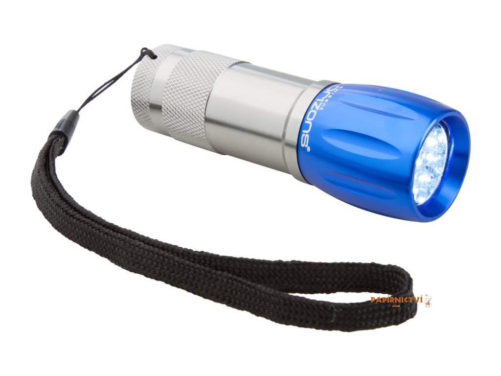 Hliníková baterka s 9ti LED diodami a páskem. Dodáváno bez 3 AAA/R03 baterií. Značkový produkt Orizons.