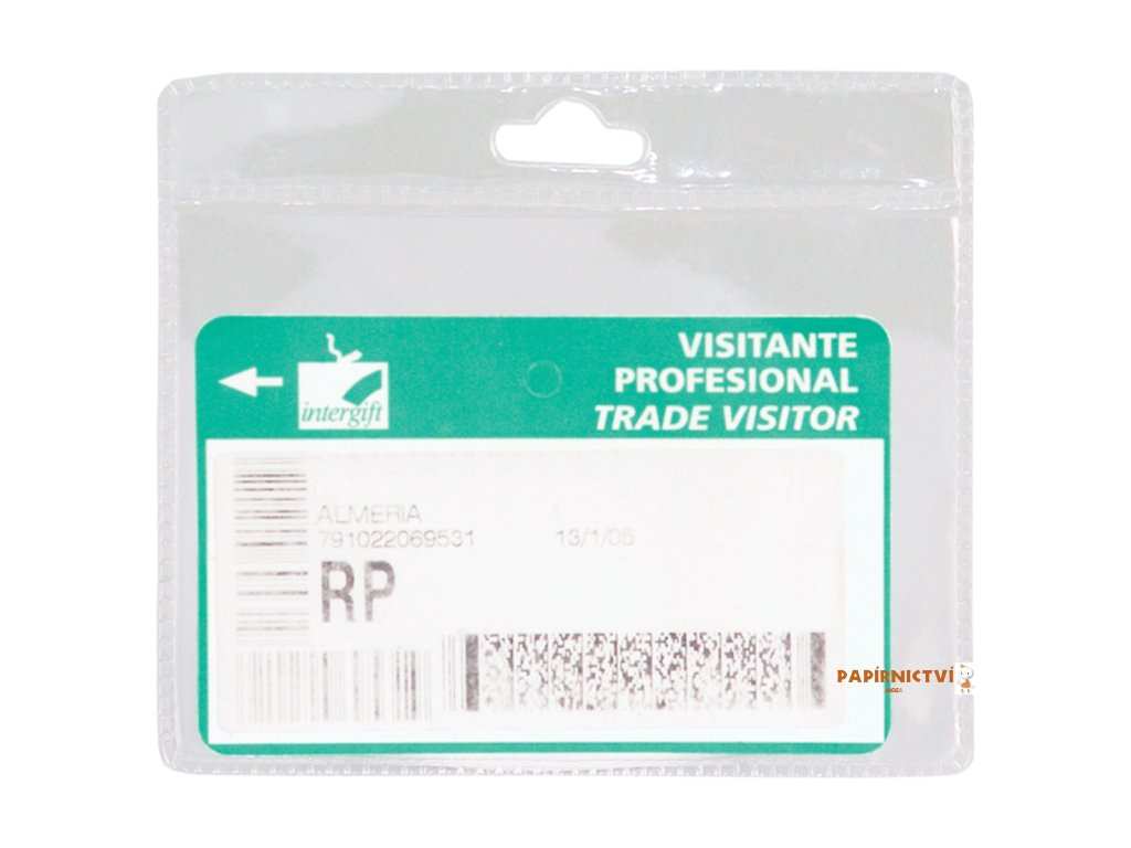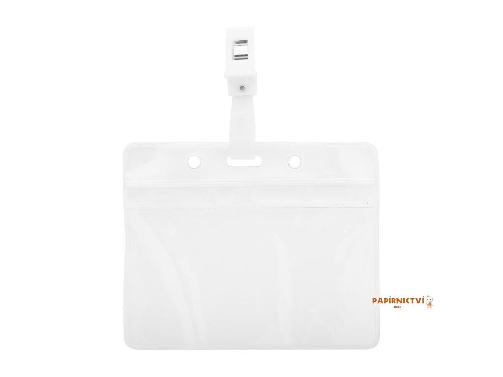 Transparentní plastová identifikační visačka, možno zavěsit na klip, či lanyard.