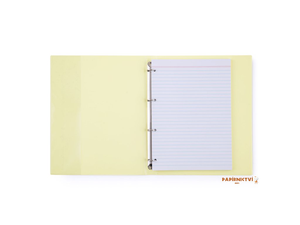 Blok v moderních pastelových barvách s kroužkovou mechanikou, formát A4, 100 linkovaných listů.