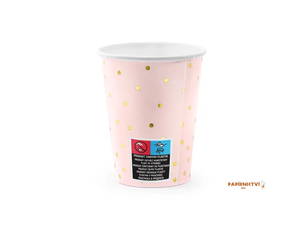 Kelímek papírový s puntíky, světle růžový, 260ml, 6ks