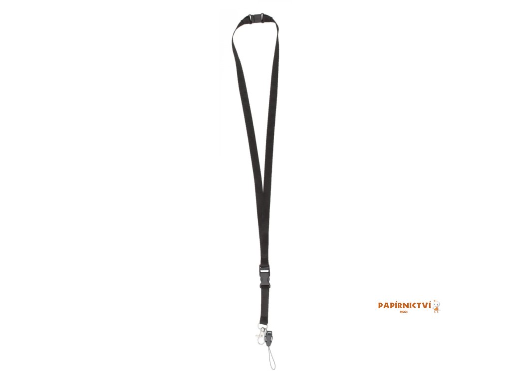 Lanyard s bezpečnostním zapínáním, oddělitelnou karabinkou a šňůrkou na mobil, polyester.
