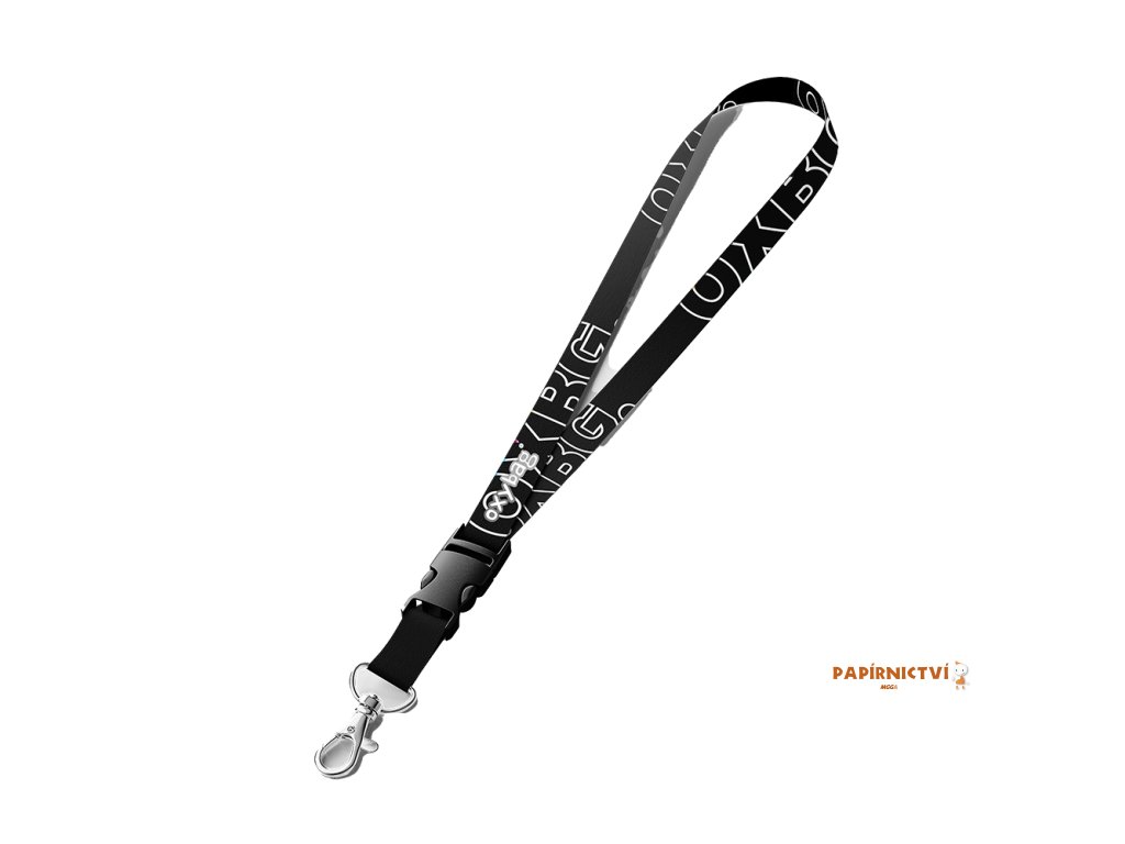 Klíčenka na krk s potiskem, na konci karabina.