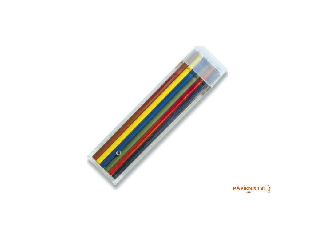 Balení náhradních tuh do pastelek studio v plastové krabičce. Balení obsahuje 12 barev (černá, modrá, tmavě modrá, hnědá, červená, tmavě červená, zelená, tmavě zelená, žlutá, růžová, oranžová, bílá).