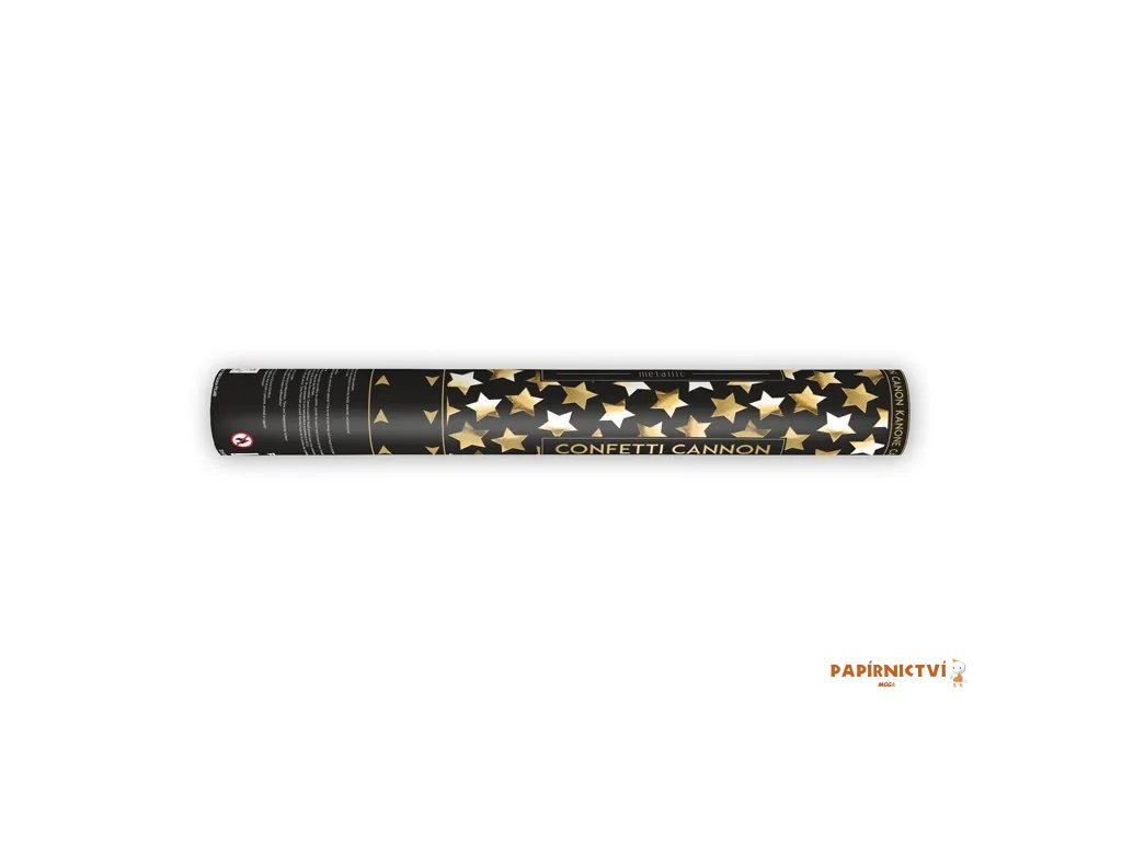 Konfetové dělo vystřelující kovové hvězdy, zlaté, délka 40 centimetrů.