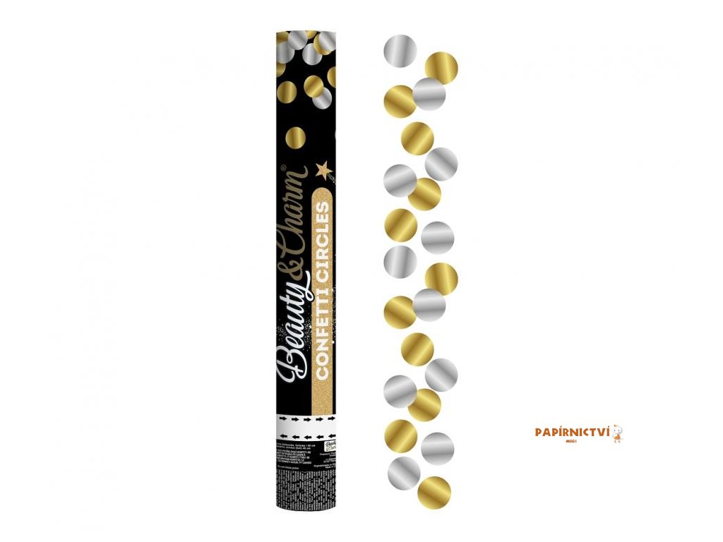 Konfety vystřelovací 40cm - zlaté a stříbrné kroužky